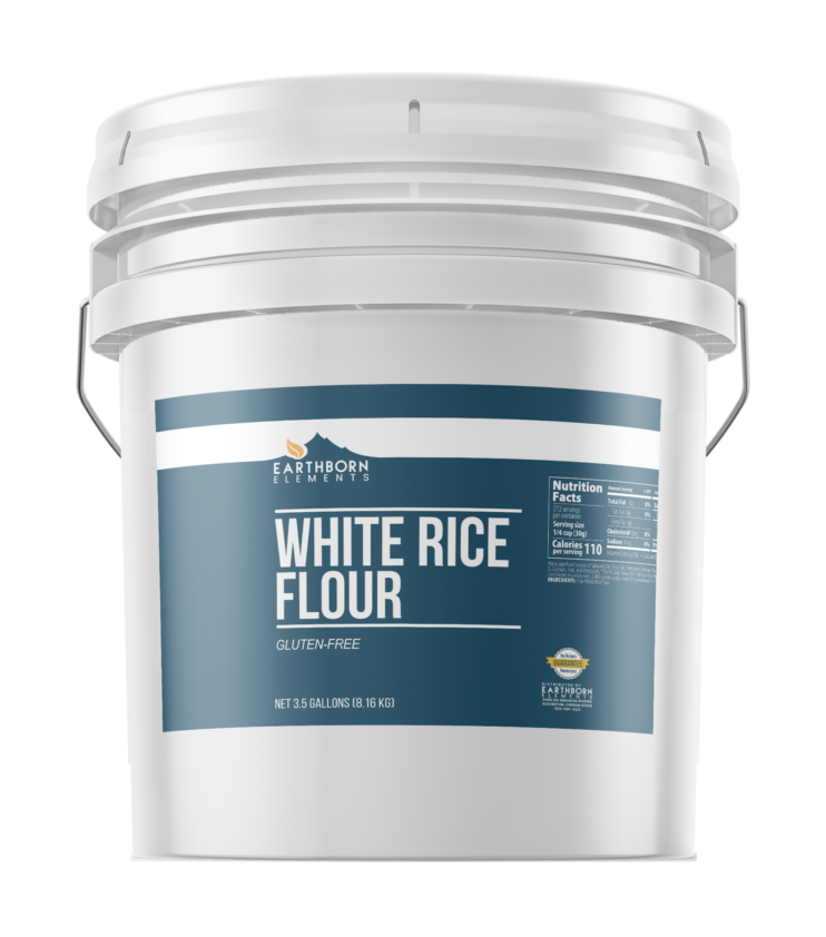 • Earthborn Elements White Rice Flour in a resealable bucket